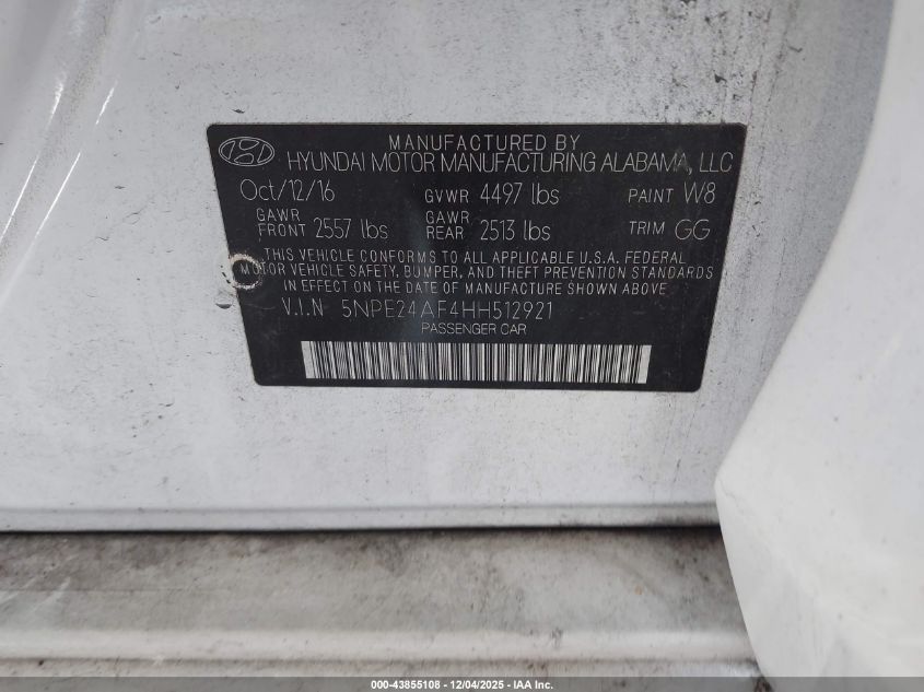 2017 HYUNDAI SONATA 2017 року Бензин, 2.4, Передній привід, vin - 5NPE24AF4HH512921 з США