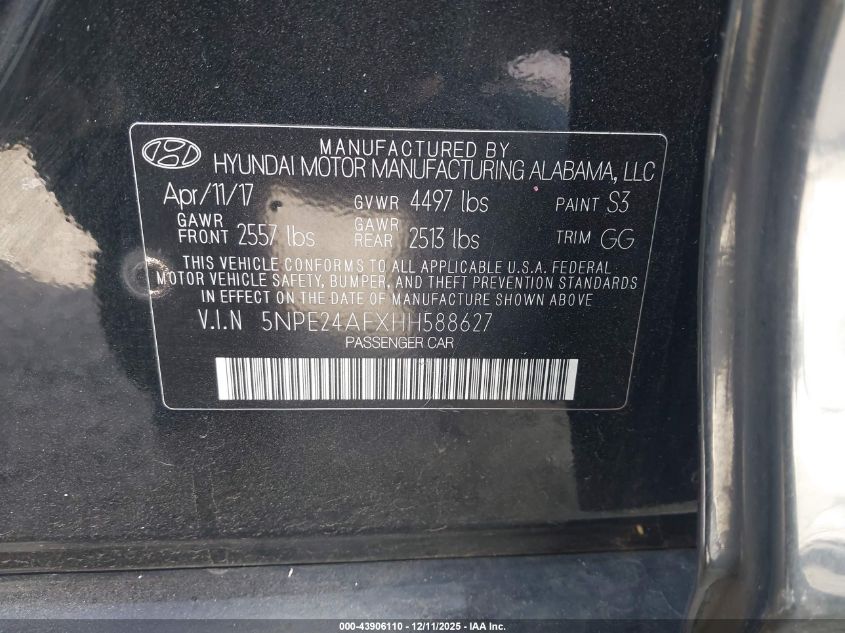 2017 HYUNDAI SONATA 2017 року Бензин, 2.4, Передній привід, vin - 5NPE24AFXHH588627 з США
