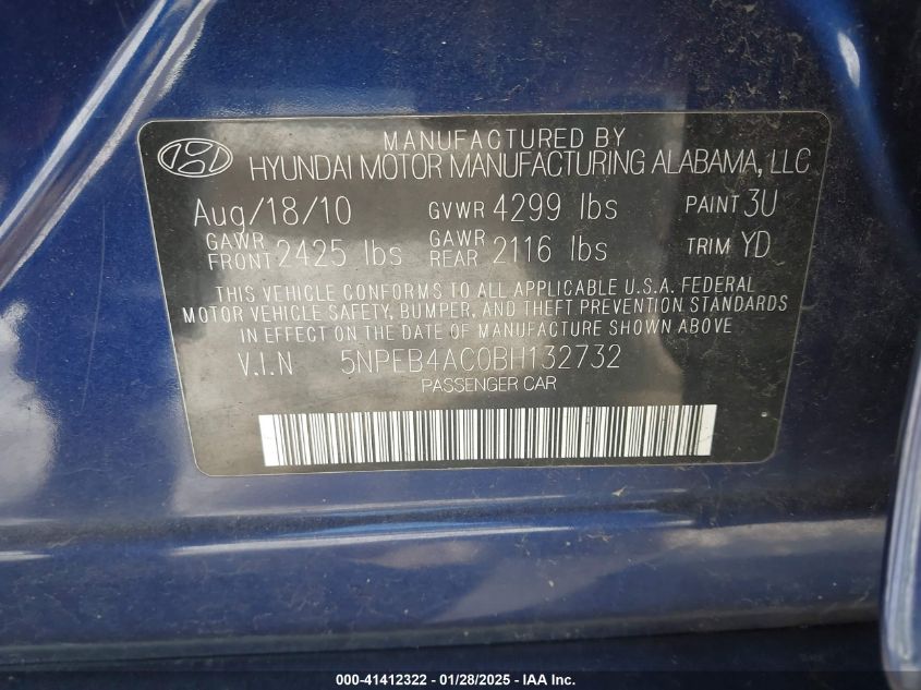 2011 HYUNDAI SONATA 2011 року Бензин, 2.4, Передній привід, vin - 5NPEB4AC0BH132732 з США