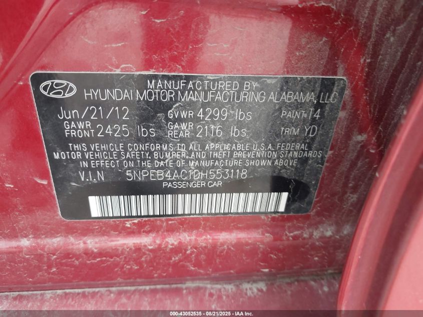 Колір ЧервонийЦиліндри 4Привід Передній привідVIN 5NPEB4AC1DH553118Стан СтаціонарноУшкодження Передня або задняДата аукціону 2025-12-09