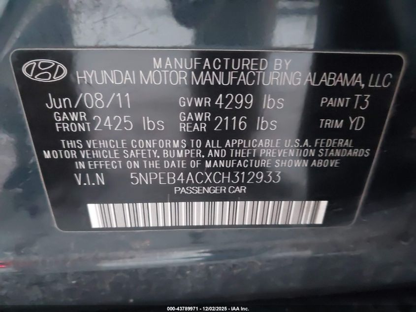 2012 HYUNDAI SONATA 2012 року Бензин, 2.4, Передній привід, vin - 5NPEB4ACXCH312933 з США