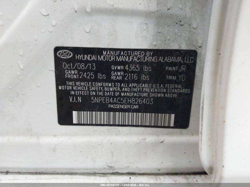 2014 HYUNDAI SONATA 2014 року Бензин, 2.4, Передній привід, vin - 5NPEB4AC5EH826403 з США