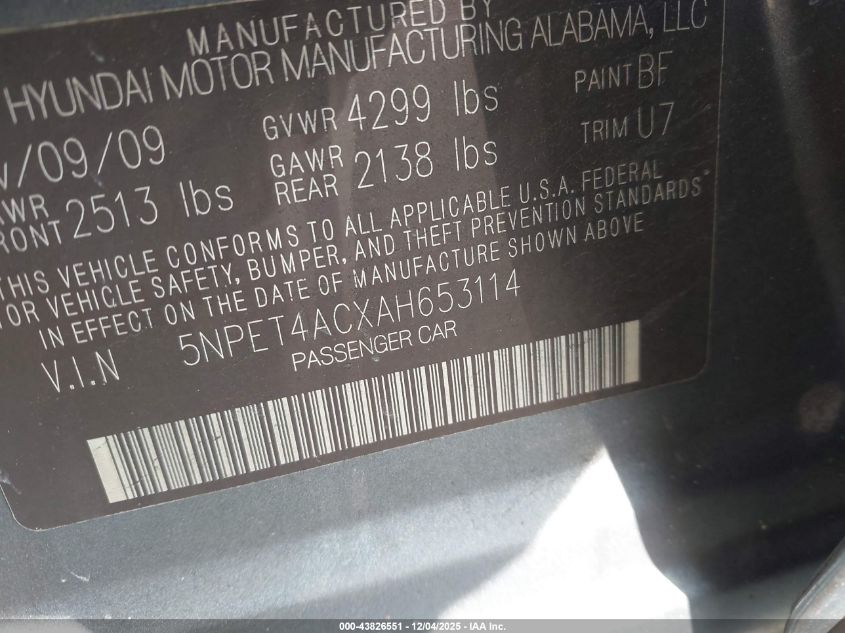 2010 HYUNDAI SONATA 2010 року Бензин, 2.4, Передній привід, vin - 5NPET4ACXAH653114 з США