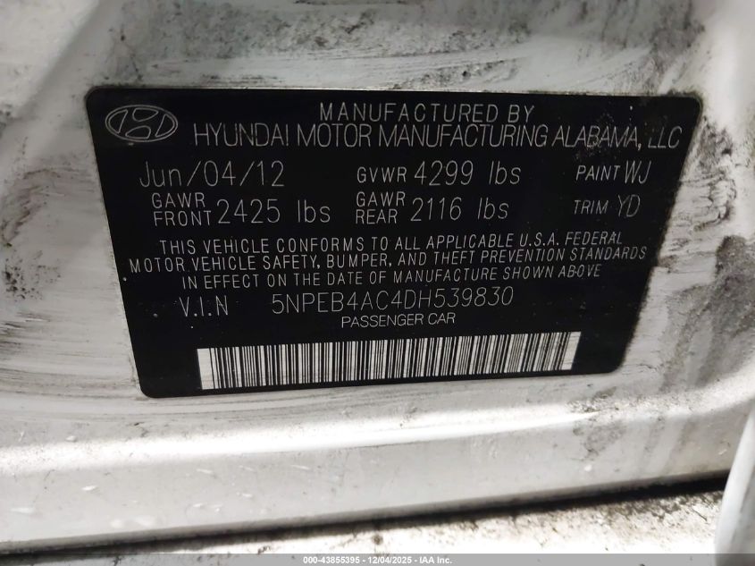 2013 HYUNDAI SONATA 2013 року Бензин, 2.4, Передній привід, vin - 5NPEB4AC4DH539830 з США