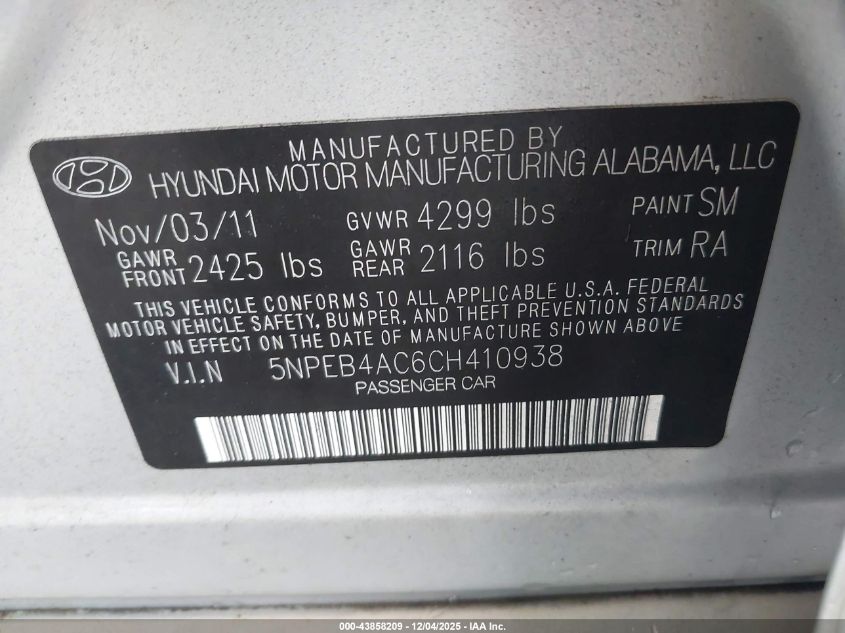 2012 HYUNDAI SONATA GLS