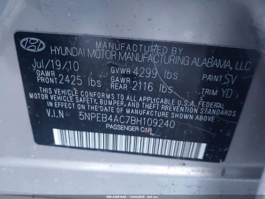 2011 HYUNDAI SONATA 2011 року Бензин, 2.4, Передній привід, vin - 5NPEB4AC7BH109240 з США