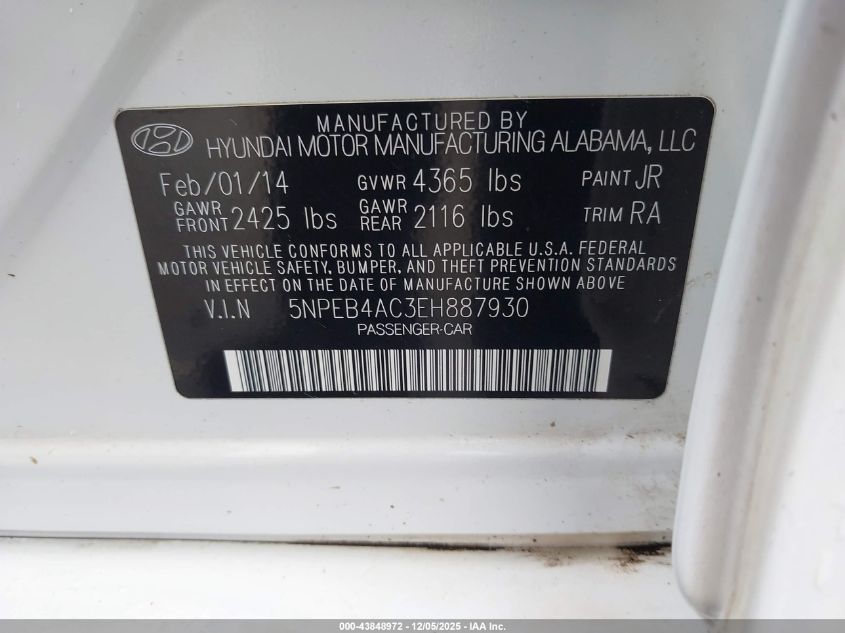 2014 HYUNDAI SONATA 2014 року Бензин, 2.4, Передній привід, vin - 5NPEB4AC3EH887930 з США