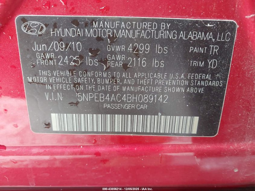 2011 HYUNDAI SONATA 2011 року Бензин, 2.4, Передній привід, vin - 5NPEB4AC4BH089142 з США