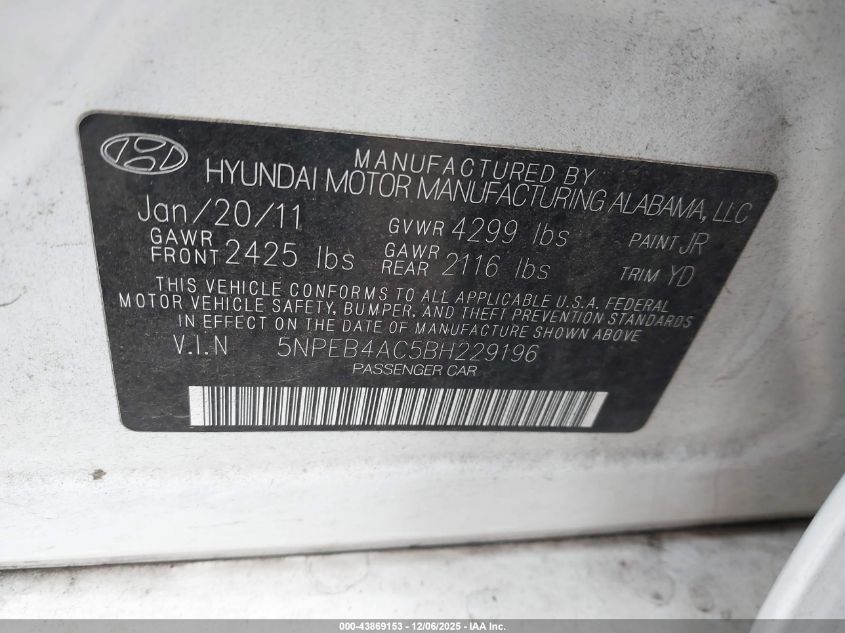 2011 HYUNDAI SONATA 2011 року Бензин, 2.4, Передній привід, vin - 5NPEB4AC5BH229196 з США