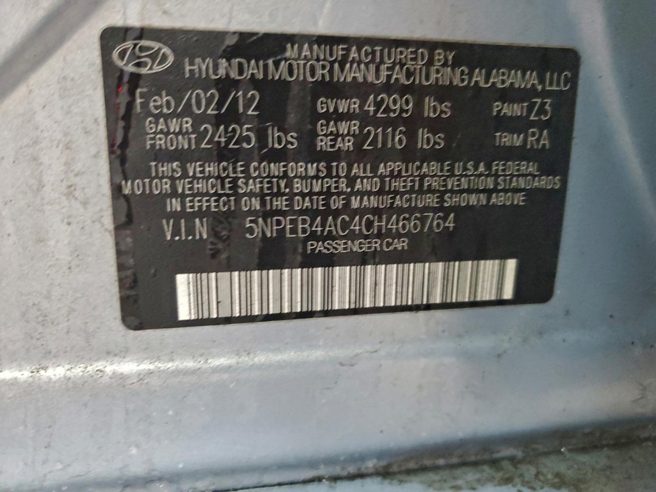 2012 HYUNDAI SONATA 2012 року Бензин, 2.4, , vin - 5NPEB4AC4CH466764 з США