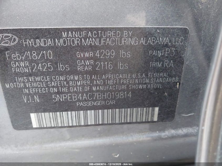 2011 HYUNDAI SONATA SE