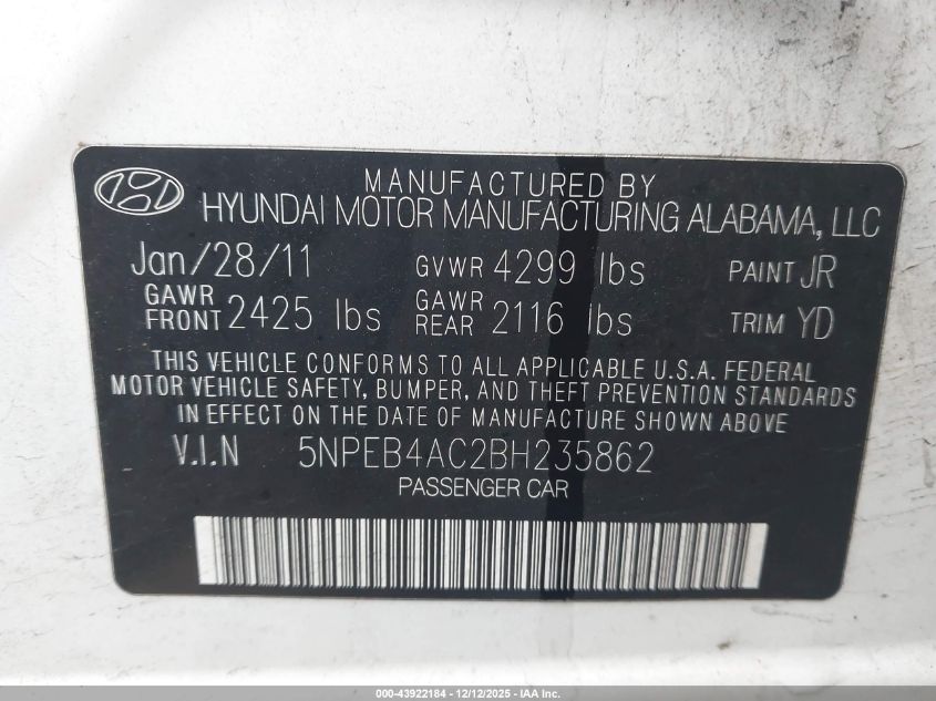 2011 HYUNDAI SONATA 2011 року Бензин, 2.4, Передній привід, vin - 5NPEB4AC2BH235862 з США