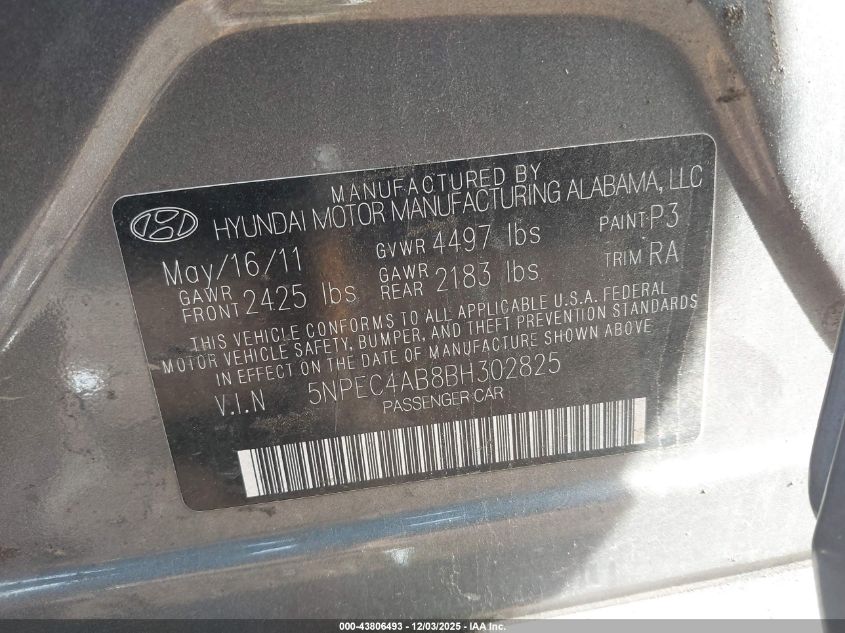 2011 HYUNDAI SONATA 2011 року Бензин, 2.0, Передній привід, vin - 5NPEC4AB8BH302825 з США