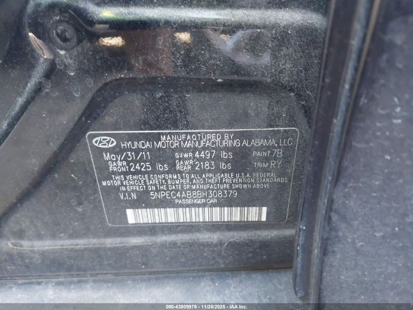 2011 HYUNDAI SONATA 2011 року Бензин, 2.0, Передній привід, vin - 5NPEC4AB8BH308379 з США