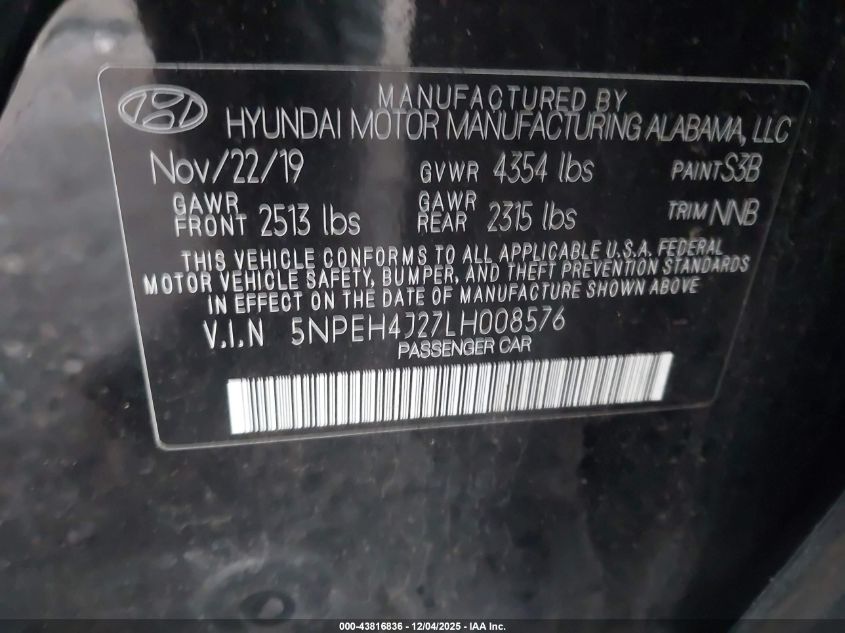 2020 HYUNDAI SONATA 2020 року Бензин, 1.6, Передній привід, vin - 5NPEH4J27LH008576 з США