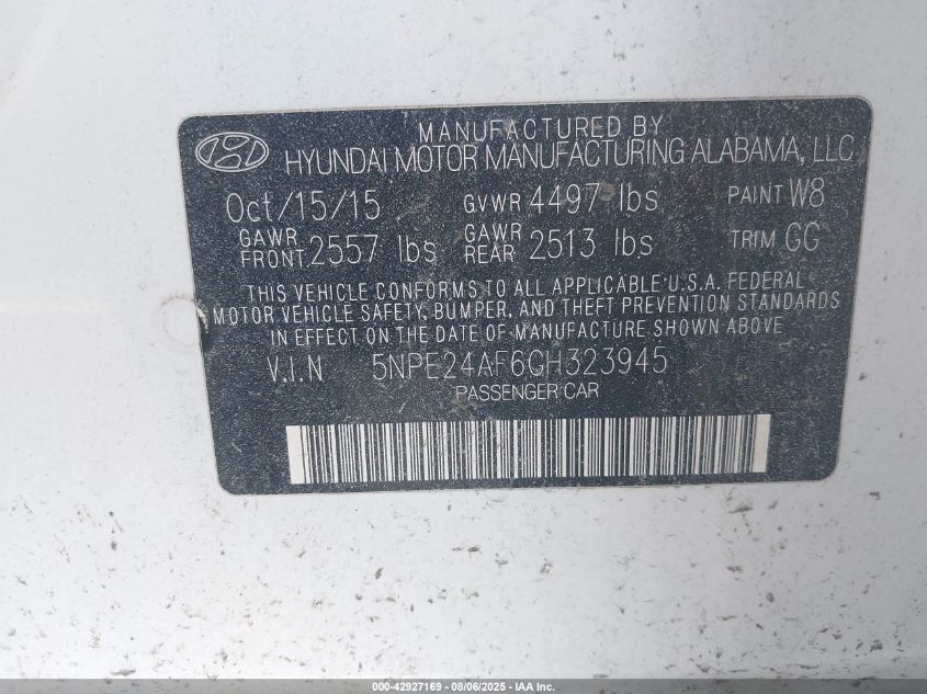 2016 HYUNDAI SONATA 2016 року Бензин, 2.4, Передній привід, vin - 5NPE24AF6GH323945 з США