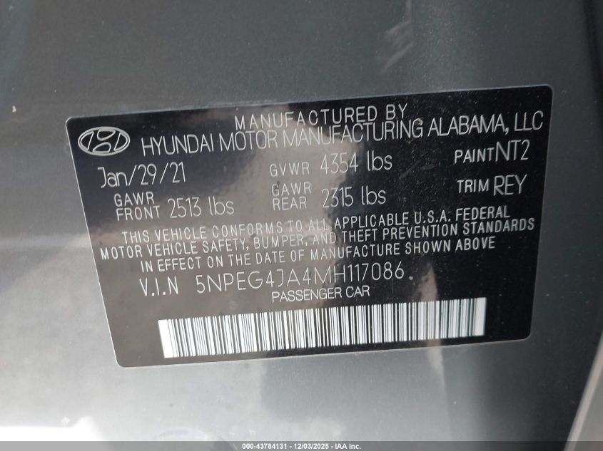 2021 HYUNDAI SONATA 2021 року Бензин, 2.5, Передній привід, vin - 5NPEG4JA4MH117086 з США