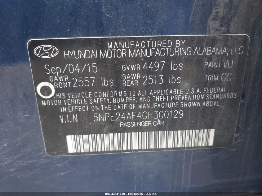 2016 HYUNDAI SONATA 2016 року Бензин, 2.4, Передній привід, vin - 5NPE24AF4GH300129 з США