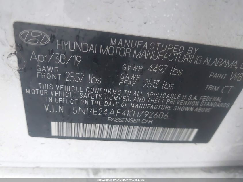 2019 HYUNDAI SONATA 2019 року Бензин, 2.4, Передній привід, vin - 5NPE24AF4KH792606 з США