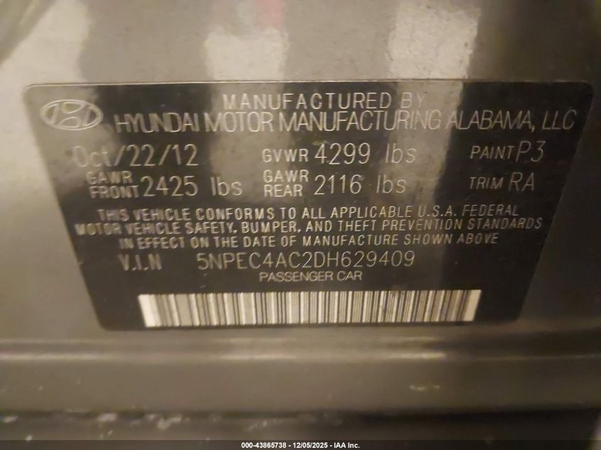 2013 HYUNDAI SONATA 2013 року Бензин, 2.4, Передній привід, vin - 5NPEC4AC2DH629409 з США