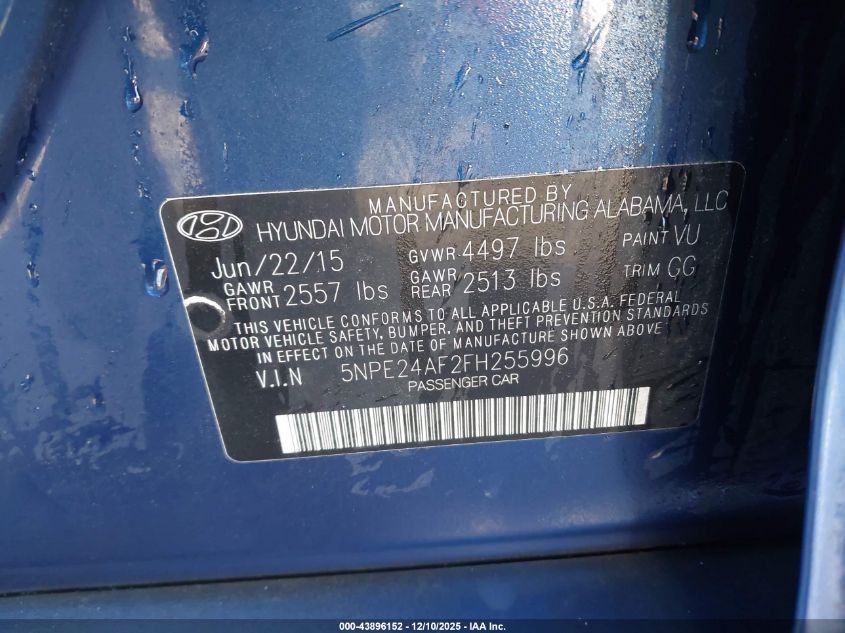 2015 HYUNDAI SONATA 2015 року Бензин, 2.4, Передній привід, vin - 5NPE24AF2FH255996 з США