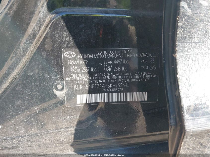 2019 HYUNDAI SONATA 2019 року Бензин, 2.4, Передній привід, vin - 5NPE24AF5KH755645 з США