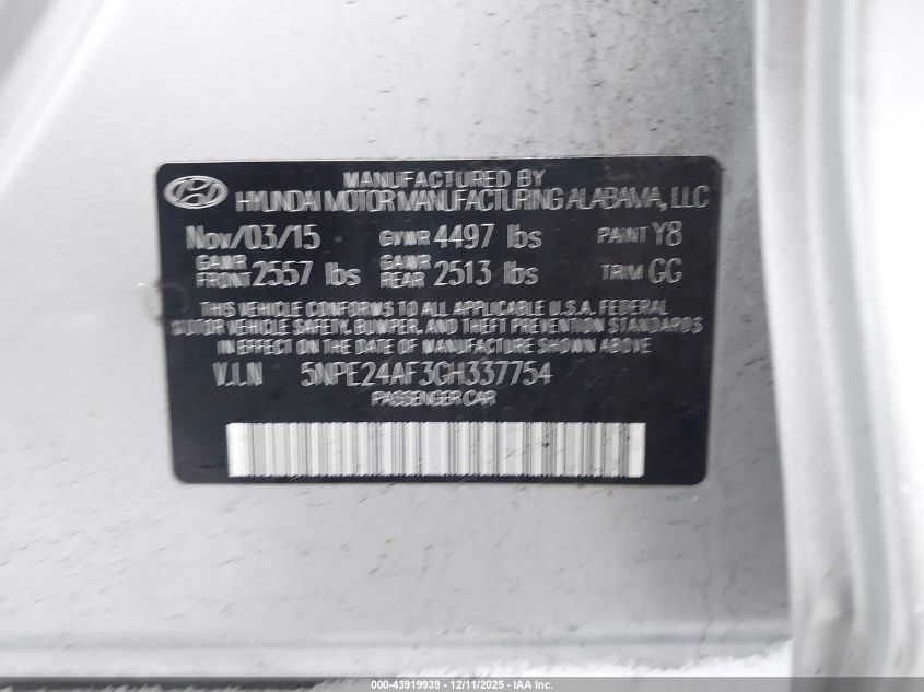 2016 HYUNDAI SONATA 2016 року Бензин, 2.4, Передній привід, vin - 5NPE24AF3GH337754 з США