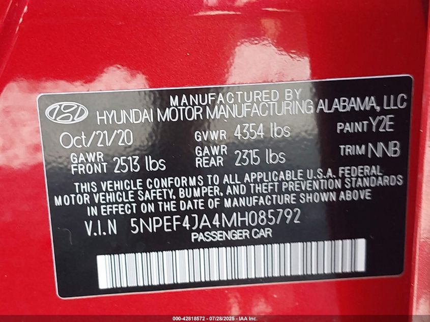 2021 HYUNDAI SONATA 2021 року Бензин, 2.5, Передній привід, vin - 5NPEF4JA4MH085792 з США
