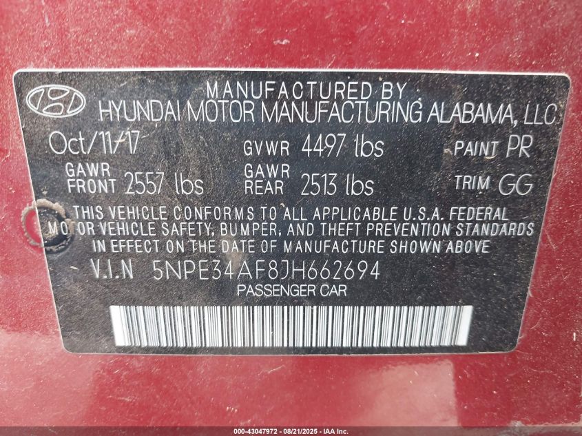 2018 HYUNDAI SONATA 2018 року Бензин, 2.4, Передній привід, vin - 5NPE34AF8JH662694 з США