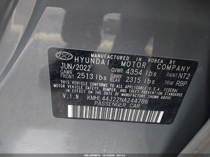 2022 HYUNDAI SONATA 2022 року Бензин, 1.6, Передній привід, vin - KMHL44J22NA244786 з США