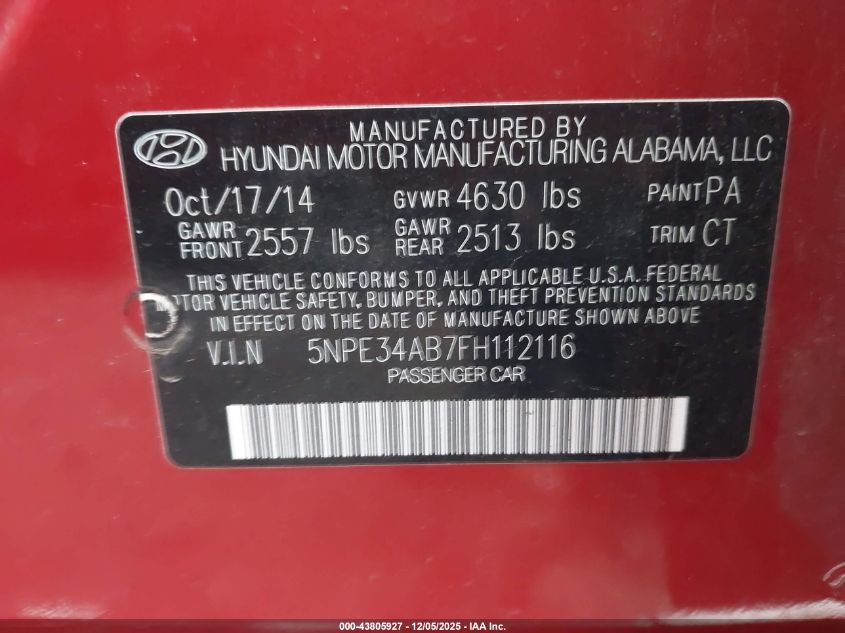 2015 HYUNDAI SONATA 2015 року Бензин, 2.0, Передній привід, vin - 5NPE34AB7FH112116 з США