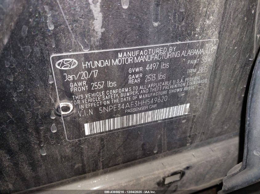 2017 HYUNDAI SONATA 2017 року Бензин, 2.4, Передній привід, vin - 5NPE34AF3HH549620 з США