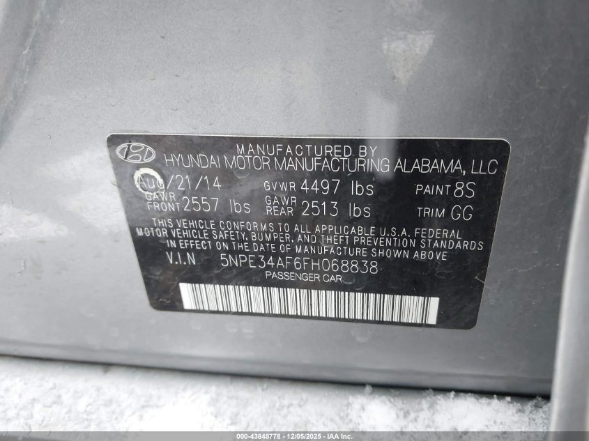 2015 HYUNDAI SONATA 2015 року Бензин, 2.4, Передній привід, vin - 5NPE34AF6FH068838 з США