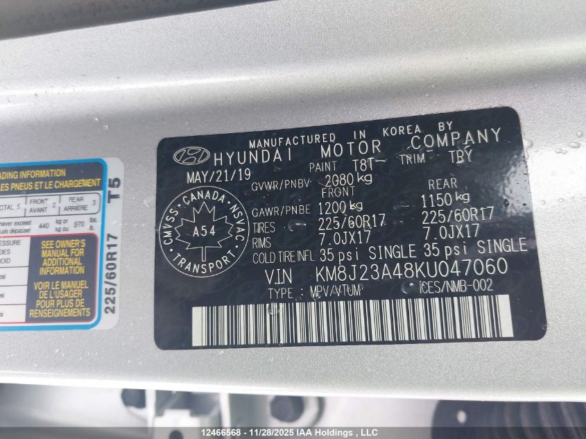 2019 HYUNDAI TUCSON 2019 року Бензин, , Передній привід, vin - KM8J23A48KU047060 з США
