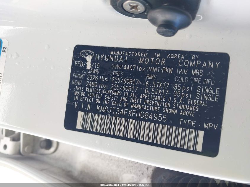 2015 HYUNDAI TUCSON 2015 року Бензин, 2.0, Передній привід, vin - KM8JT3AFXFU084955 з США