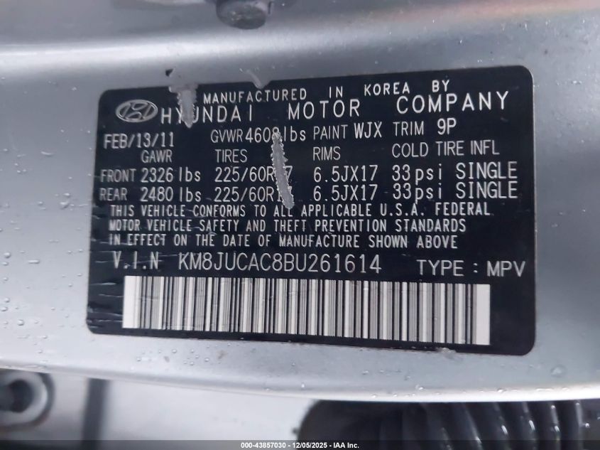 2011 HYUNDAI TUCSON 2011 року Бензин, 2.4, Повний привід, vin - KM8JUCAC8BU261614 з США