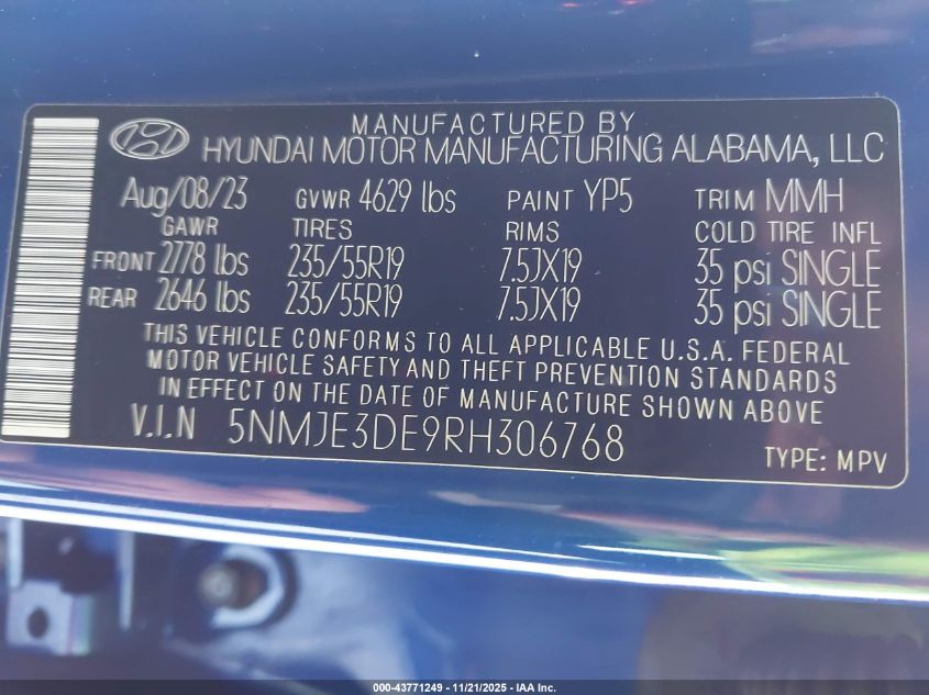 2024 HYUNDAI TUCSON 2024 року Бензин, 2.5, Передній привід, vin - 5NMJE3DE9RH306768 з США