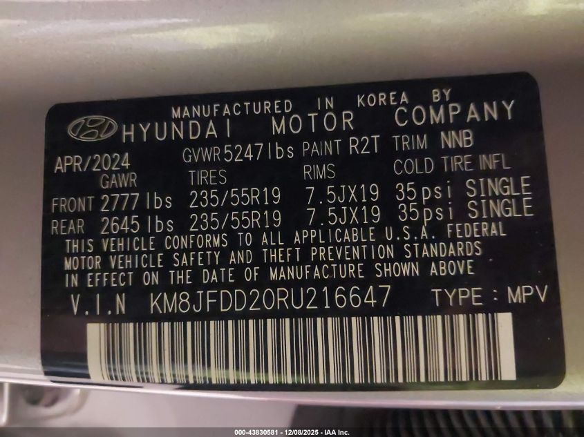 2024 HYUNDAI TUCSON 2024 року Гібрид, 1.6, Повний привід, vin - KM8JFDD20RU216647 з США