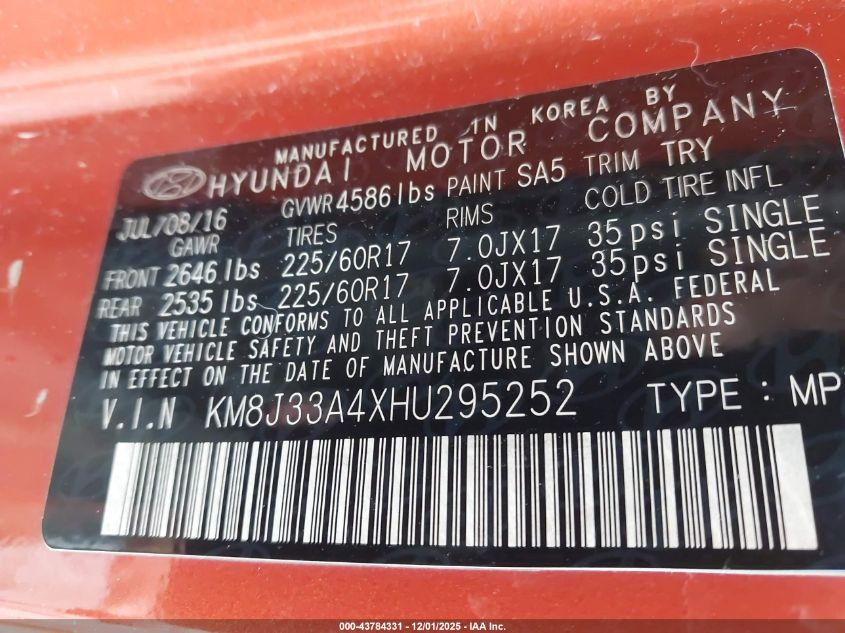 2017 HYUNDAI TUCSON LIMITED