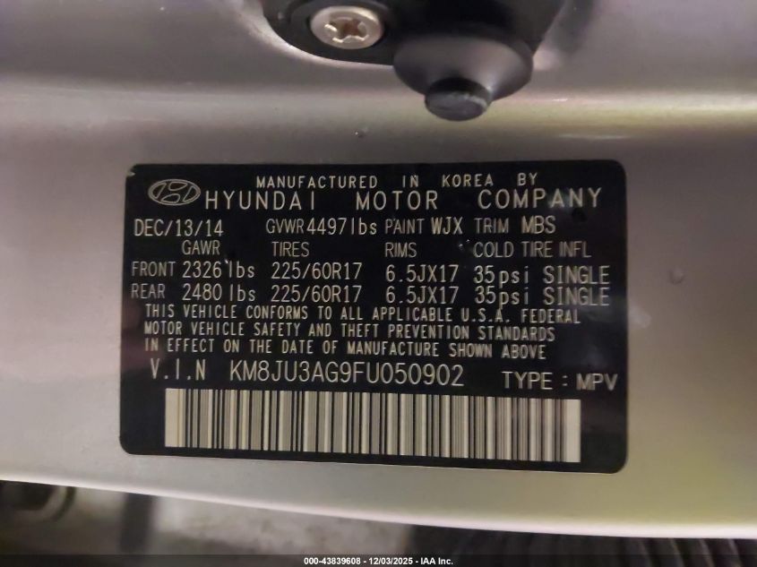 2015 HYUNDAI TUCSON 2015 року Бензин, 2.4, Передній привід, vin - KM8JU3AG9FU050902 з США