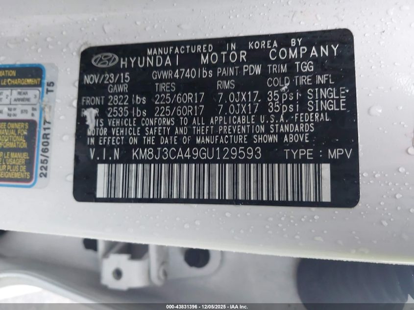 2016 HYUNDAI TUCSON 2016 року Бензин, 2.0, Повний привід, vin - KM8J3CA49GU129593 з США