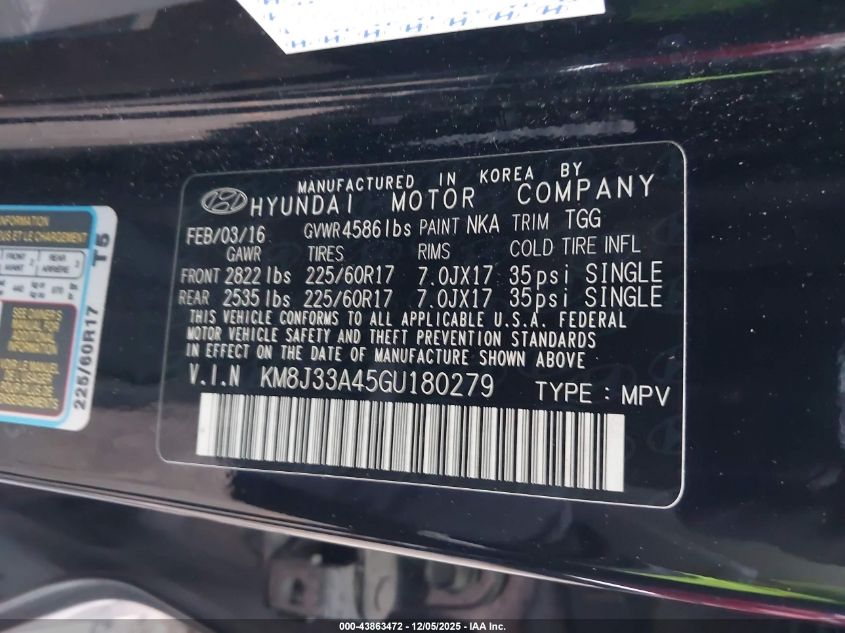 2016 HYUNDAI TUCSON 2016 року Бензин, 2.0, Передній привід, vin - KM8J33A45GU180279 з США