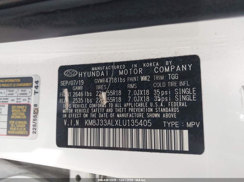 2020 HYUNDAI TUCSON 2020 року Бензин, 2.4, Передній привід, vin - KM8J33ALXLU135405 з США
