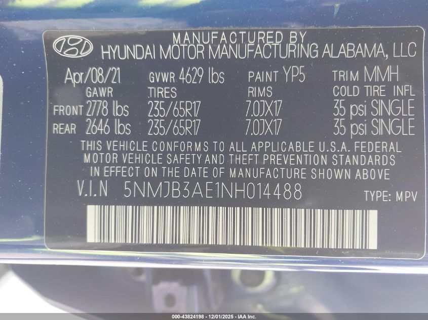 2022 HYUNDAI TUCSON 2022 року Бензин, 2.5, Передній привід, vin - 5NMJB3AE1NH014488 з США