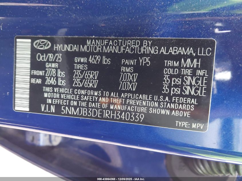 2024 HYUNDAI TUCSON 2024 року Бензин, 2.5, Передній привід, vin - 5NMJB3DE1RH340339 з США