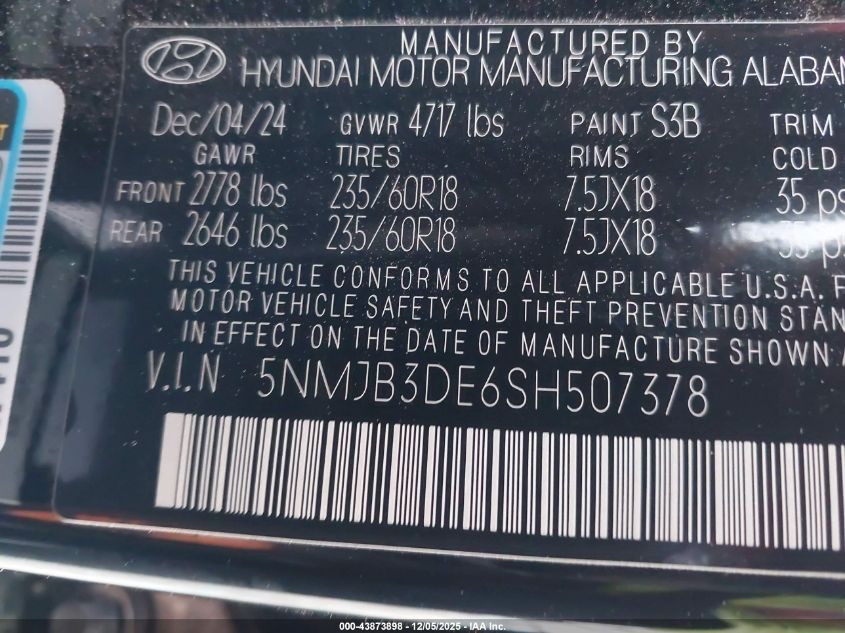 2025 HYUNDAI TUCSON 2025 року Бензин, 2.5, Передній привід, vin - 5NMJB3DE6SH507378 з США
