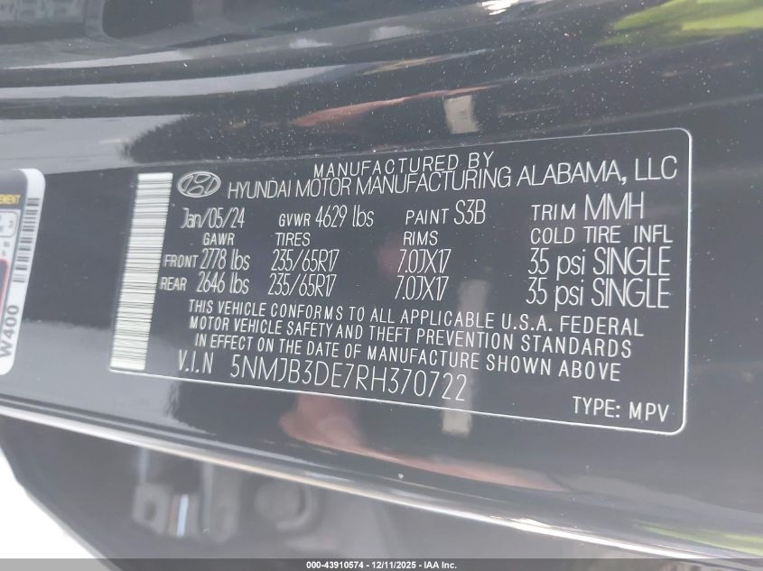 2024 HYUNDAI TUCSON 2024 року Бензин, 2.5, Передній привід, vin - 5NMJB3DE7RH370722 з США