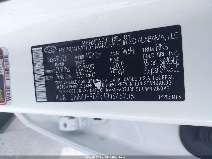 2024 HYUNDAI TUCSON 2024 року Бензин, 2.5, Передній привід, vin - 5NMJF3DE6RH346206 з США