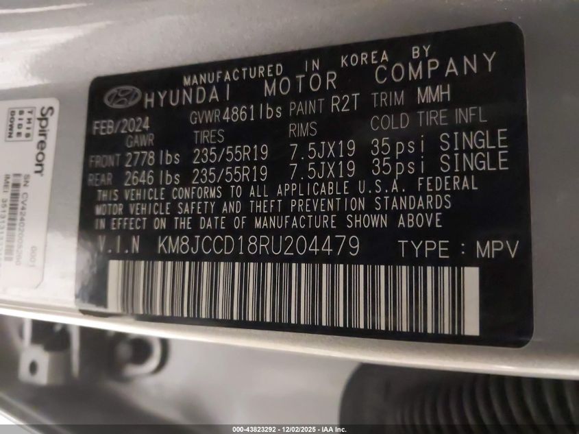 2024 HYUNDAI TUCSON 2024 року Гібрид, 1.6, Повний привід, vin - KM8JCCD18RU204479 з США