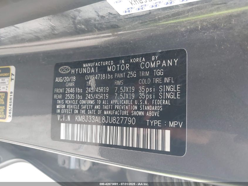 2018 HYUNDAI TUCSON 2018 року Бензин, 2.4, Передній привід, vin - KM8J33AL8JU827790 з США